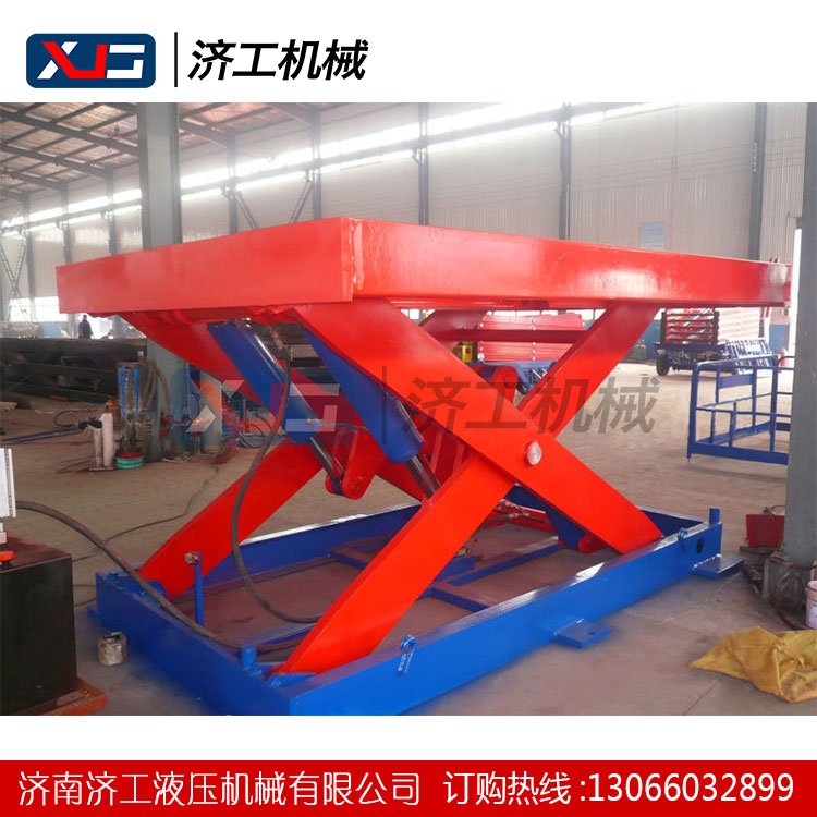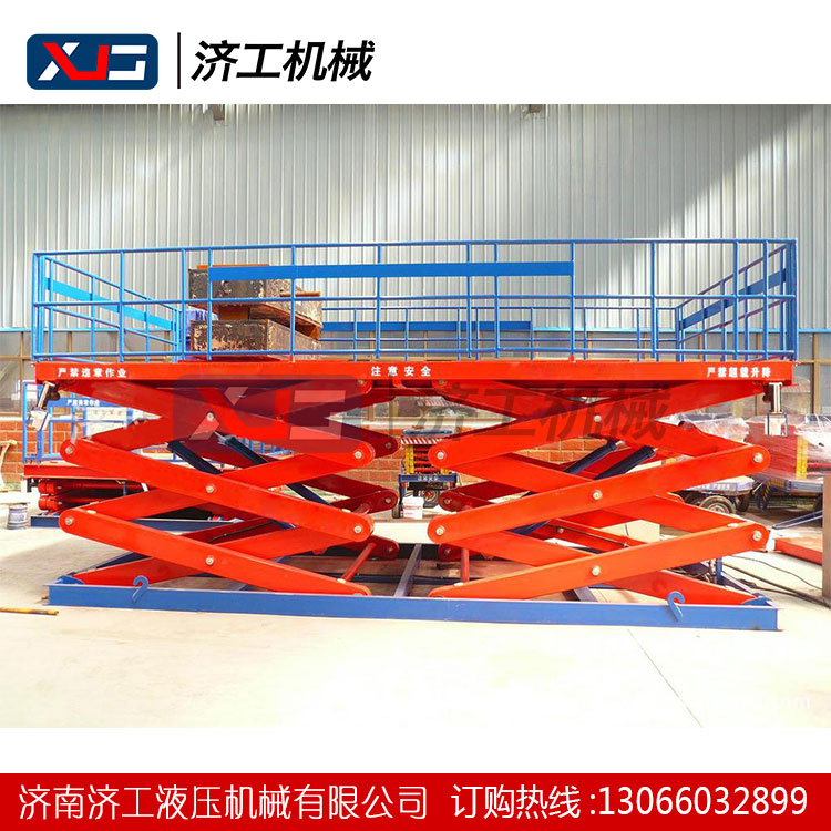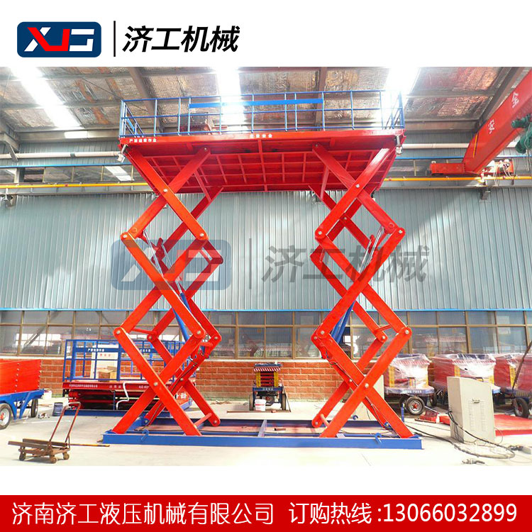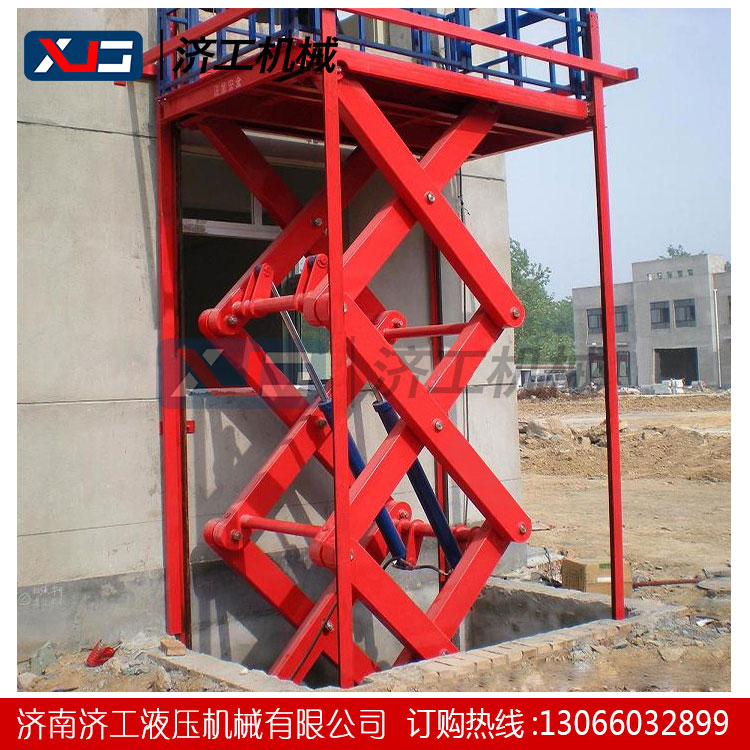 固定剪叉式升降機(jī)貨梯主要用于建筑物層間貨物上下運(yùn)送,安裝在地坑內(nèi),下降低時(shí)工作臺(tái)面與地面相平。