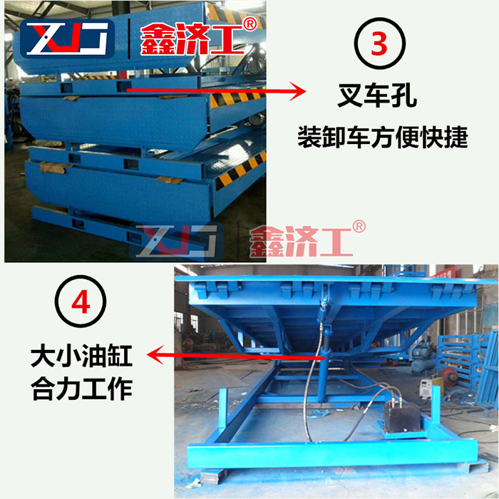 倉(cāng)庫(kù)固定裝卸平臺(tái)即為固定剪叉式升降機(jī),由升降臺(tái)面及設(shè)備框架,配套油缸,液壓泵站,傳動(dòng)支桿,配電設(shè)備組成,通過(guò)液壓泵站做工使液壓油在液壓缸內(nèi)形成閉路高壓,油缸工作帶動(dòng)導(dǎo)向架完成整個(gè)升降過(guò)程。特點(diǎn):升降穩(wěn)定性好,適用于高度差間輸送貨物,生產(chǎn)流水線,貨物裝卸,地下室至地面及樓層間的貨物輸送。